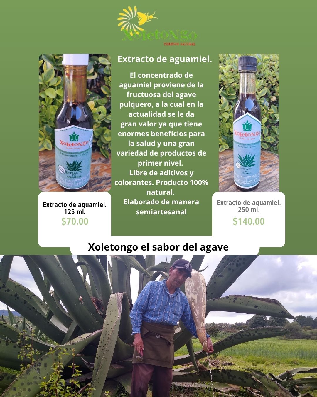 Cada botella ha sido cuidadosamente elaborada para preservar el auténtico sabor y beneficios del aguamiel. Perfecta para añadir a tus bebidas favoritas o disfrutar sola, este extracto es ideal para aquellos que buscan incorporar productos naturales y tradicionales a su dieta.